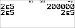 2 E 5 < Hinweis: Gibt (2 x 105) in der Notation E des Rechners ein. |