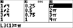 Durch Drücken von v wird der Dateneditor angezeigt, in dem Sie Daten in bis zu 3 Listen eingeben können (L1, L2, L3). Jede Liste kann bis zu 50 Elemente enthalten.