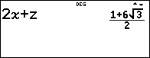 Drücken Sie % , um einen Ausdruck mit Zahlen, Funktionen und Variablen/Parametern einzugeben und auszurechnen. Steht auf dem Hauptbildschirm ein Term, dann wird der Inhalt in Expr= eingefügt, wenn Sie % drücken. Wenn beim Drücken von % der Cursor im Protokoll aktiv ist, wird in Expr= der ausgewählte Ausdruck eingefügt.