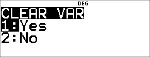% { efface les valeurs des variables. Appuyez sur % {, puis sélectionnez 1:Yes pour effacer toutes les valeurs des variables. Les variables Var Stats calculées ne seront plus disponibles dans le menu Var Stats. Au besoin, recalculez les fonctions statistiques.