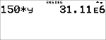 % h rappelle les valeurs des variables. Appuyez sur % h pour afficher un menu de variables et les valeurs stockées associées. Sélectionnez la variable à rappeler, puis appuyez sur <. La valeur assignée à la variable est insérée dans l'entrée active et est utilisée pour évaluer l'expression.