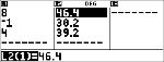 | • | Dans cet état, appuyez sur v pour afficher un menu permettant de coller les listes L1, L2 ou L3 dans la formule de calcul. |