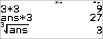 Le résultat de la dernière entrée exécutée sur l'écran de calcul est stockée dans la variable ans. Cette variable est conservée en mémoire, même après la mise hors tension de la calculatrice. Pour rappeler la valeur de la variable ans :