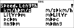 Le menu CONVERSIONS permet d'atteindre un nombre total de 20 conversions (ou 40 en cas de conversion dans les deux sens). La conversion doit figurer à la fin d'une expression. La valeur de l'expression complète sera convertie. Il est possible de stocker une conversion dans une variable.