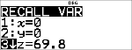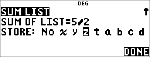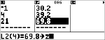 | • | Dans cet état, appuyez sur v pour afficher un menu permettant de coller les listes L1, L2 ou L3 dans la formule de calcul. |
