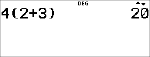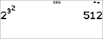 In de MathPrint™-modus worden exponenten met de G-toets uitgewerkt van rechts naar links. De uitdrukking 2^3^2 wordt uitgewerkt als 2^(3^2), met als uitkomst 512.