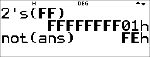 HEX modus: not, 2’s |