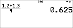 | • | Se il cursore è in una posizione di immissione Classic, immettere l'espressione del numeratore tra parentesi, quindi premere P per visualizzare la barra spessa della frazione e infine immettere l'espressione del denominatore anch'essa tra parentesi in modo che il risultato sia calcolato come ci si aspetta per il proprio problema. |