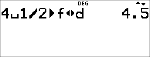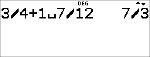 | • | Quando si desidera un risultato con numeri misti, utilizzare la conversione dei numeri misti 4n/d³´Un/d alla fine dell'espressione immessa. Questa funzione si trova in d 1: 4n/d³´Un/d. |