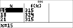 Dopo una ricerca in prossimità di x = 18, il punto (18,324) sembra essere il vertice della parabola in quanto sembra essere il punto di svolta dell'insieme di punti di questa funzione. Per cercare più in prossimità di x = 18, cambiare il valore di Step con valori sempre più piccoli per vedere punti più prossimi al punto (18,324).