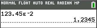 â stands for "x10" and the calculator interprets the entire number as (123.45 x 10-2) as if it was entered with parentheses. |