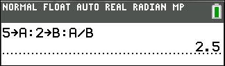 To enter two or more expressions or instructions on a line, separate them with colons (ƒ m). All instructions are stored together in last entry y [ (above [enter]).