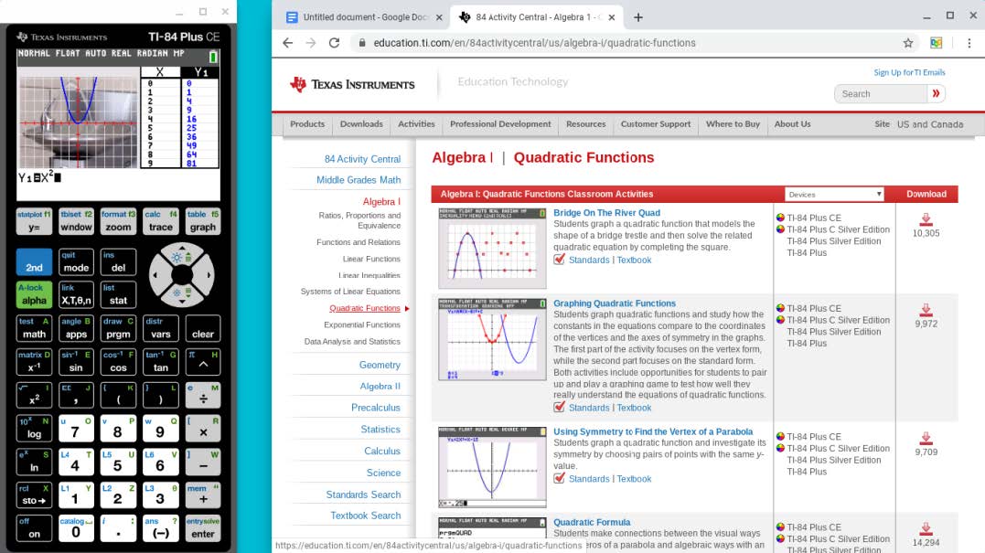 SmartPad CE App on a connected TI-84 Plus CE: |