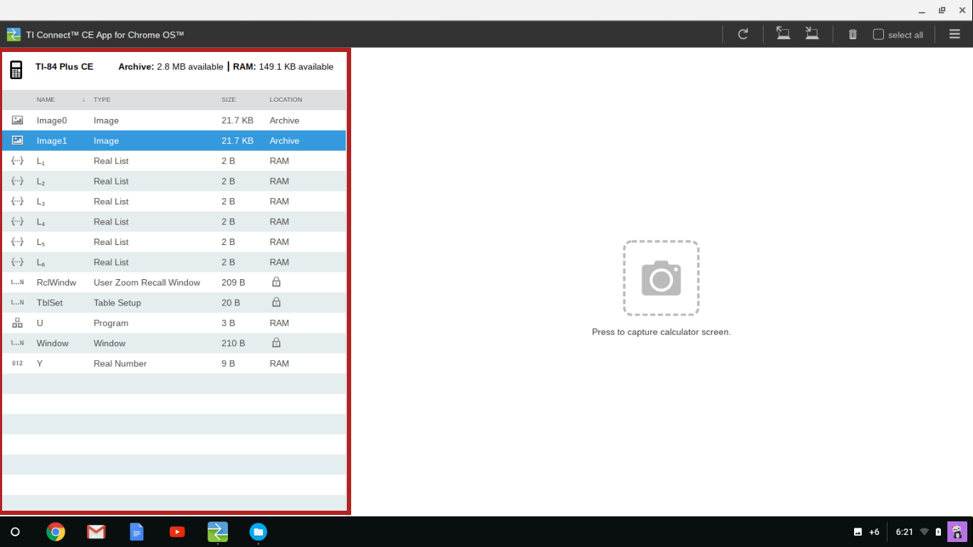 Add content from your computer to the connected calculator. |