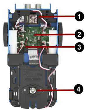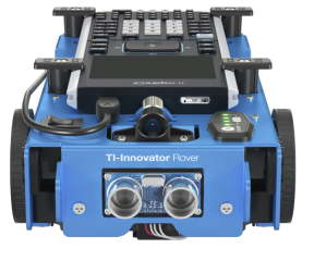 Explore todos los lados del TI-Innovator™ Rover ensamblado con el TI-Innovator™ Hub y la calculadora graficadora TI CE o dispositivo portátil I-Nspire™ CX conectado.