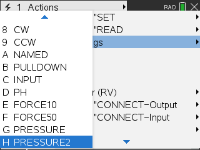 Let op de laatste menu-invoer. Hiermee kunt u de naam van het object invoeren in plaats van het in het menu te selecteren. Deze invoer kan ook worden gebruikt voor sensoren en randapparatuur die niet expliciet in de menu’s zijn opgenomen. Om deze invoer te gebruiken, selecteert u het menu-item om het begin van de opdracht te plakken. Voer vervolgens de naam in van de sensor of het apparaat dat u gebruikt.