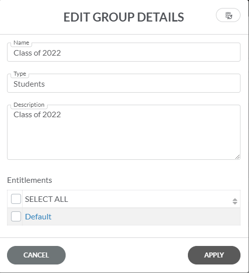 | • | Remove – opção para remover um grupo completo. Esta opção é útil se tiver muitas alterações a realizar no grupo e quiser reimportar os utilizadores corretos. |