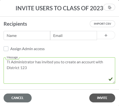 | • | Send Invite – opção para enviar convites por correio eletrónico para membros que devem ser incluídos num grupo. |