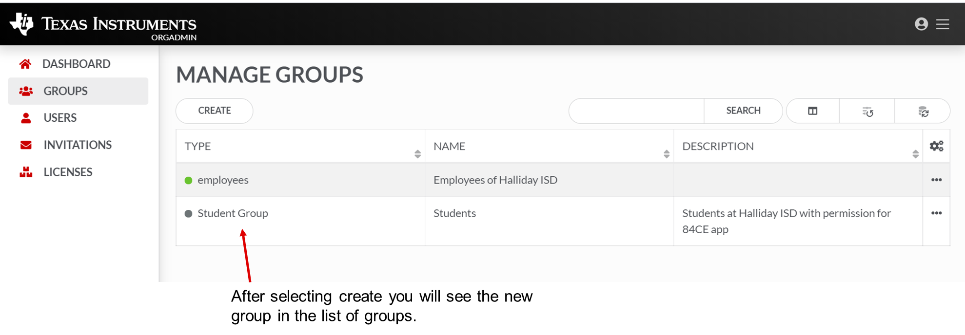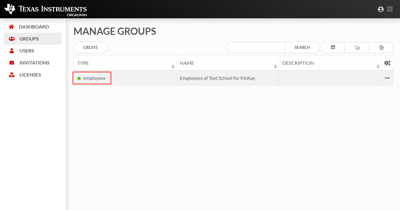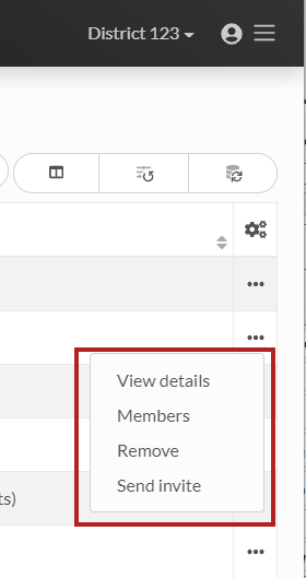 No separador GROUPS do painel OrgAdmin da TI, pode escolher View Details, Members, Remove ou Send Invite selecionando