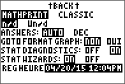 AFF : la sélection d'options de menu dans PROB MATH, CALC STAT, DISTR DISTR, DESSIN DISTR et suite( via LISTE OP affiche un écran qui propose une aide sur la syntaxe (assistant) pour la saisie des arguments requis et optionnels dans la commande ou la fonction. La fonction ou la commande collera les arguments saisis dans l'historique de l'écran de calcul ou dans la plupart des autres emplacements où le curseur est activé pour permettre la saisie. Certains calculs se feront directement à partir de l'assistant. Si vous accédez à une commande ou à une fonction à partir de N, la commande ou la fonction sera collée sans aide de l'assistant.