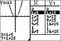 | • | Le mode GRAPHE-TABLE affiche le graphe en cours dans la partie gauche de l'écran et l'écran table dans la partie droite. |