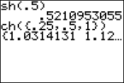 sh(, ch( et th( sont les fonctions hyperboliques. Chacune de ces fonctions est valide pour des nombres réels, des expressions et des listes.
