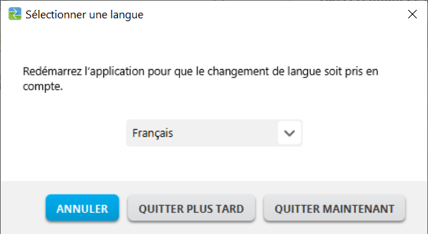 Sélectionnez le changement de langue après avoir redémarré l'application. |