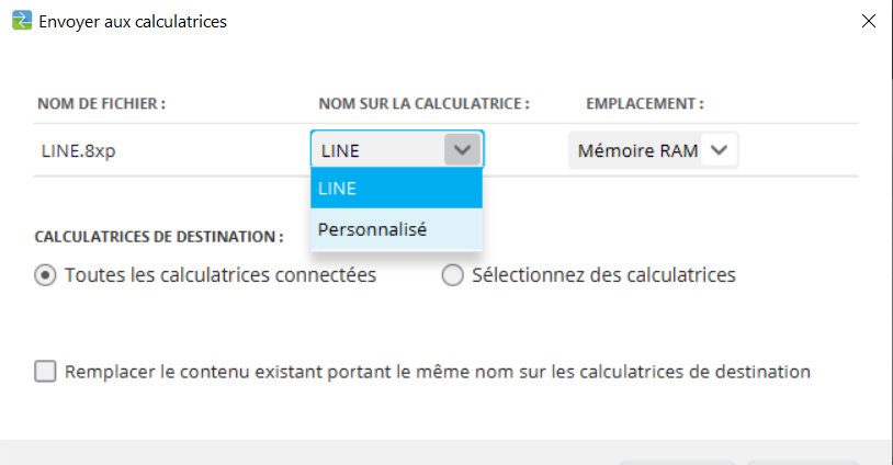 Pour envoyer un programme à une calculatrice connectée