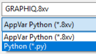 | - | Sélectionnez soit l'AppVar (*.8xv) soit l'extension Python (*.py) lors de l'enregistrement sur votre ordinateur. |