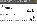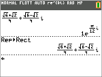 Réglez z sur le mode angulaire REAL, POLAR ou RADIAN pour travailler avec les fonctions exponentielles complexes utilisant J. Avec des valeurs d'angles en radians sélectionnées, multiples de p/12, la TI-82 Advanced Édition Python prend en charge les résultats exacts pour les valeurs radiales.