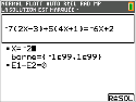 (Options avancées) Borne donne l'intervalle contenant la solution. Ici, {-1E99, 1E99} correspond à {-1x1099, 1x1099}, ce qui signifie que la calculatrice recherche la solution dans un intervalle numérique très large. Vous pouvez ajuster cet intervalle si vous ne voulez pas obtenir toutes les solutions de votre équation en limitant les valeurs à un intervalle plus réduit. Ici, il n'y a qu'une solution, X=-2. |