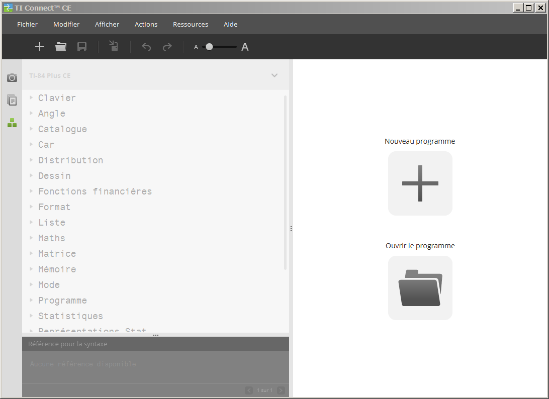 L'espace de travail Program Editor (Éditeur de programmes) vous permet de travailler avec des programmes de base TI.