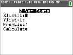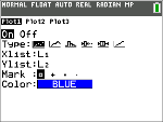 | 5. | Drücken Sie 1: Plot1 (um ein Streudiagramm für L1 und L2 einzurichten) und drücken Sie dann [enter]. |