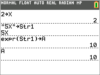 Chaîne4Équ( convertit chaîne en une équation et mémorise l’équation dans Yn. chaîne peut être une chaîne ou une variable de chaîne. Chaîne4Équ( est l’inverse de Équ4Chaîne(.