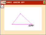 Drücken Sie die Taste ƒ einmal und verwenden Sie eine der Tasten | ~ } †, um den Eckpunkt an eine andere Stelle zu ziehen. Hinweis:Wenn sich der Pfeil in der Nähe eines geometrischen Objekts befindet, drücken Sie ƒ, um den Pfeil durch einen Handcursor zu ersetzen, mit dem Sie das Objekt ziehen können. Beachten Sie, dass sich die Winkelmessungen mit Änderung der Dreieckform ändern. Ihre Summe ist jedoch immer gleich. |