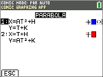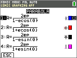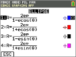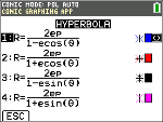 | • | Werte, die Sie in Conic Graphing eingeben, werden beim Beenden der Anwendung in einer Anwendungsvariablen (AppVar) gespeichert. Bei jeder folgenden Ausführung der Anwendung werden jeweils die zuletzt eingegebenen Werte angezeigt. |