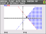 Nutzen Sie die Funktionen im INEQUALITY-Menü, um mit „Spur interess. Punkte“ den bzw. die Schnittpunkt(e) der Grenzen des schraffierten Bereichs anzuzeigen. |