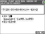 | 4. | Drücken Sie die Schnelltaste [SOLVE] (s). Hier gibt es nur eine Lösung, X=-2. |
