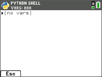 Wenn Sie ein Python-Programm ausführen, werden die definierten Variablen des zuletzt ausgeführten Programms im Menü Shell>Tools> 4:Vars... aufgelistet und stehen für die Verwendung in der Shell zur Verfügung. Wenn keine Variablen angezeigt werden, müssen Sie Ihr Programm möglicherweise erneut ausführen. |