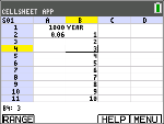Pase a la celda B1 y escriba “AÑO (usando la tecla ƒ, o Alpha Lock y7, según sea preciso). Nota: Debe incluir unas comillas (") delante de la palabra AÑO. Las comillas indican a CellSheet que debe tratarlo como texto en lugar de como una variable. |