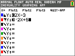 Pulse ~ para desplazar el cursor e introduzca Y1 <2x-3. |