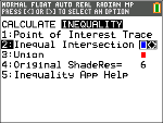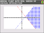 Use las funciones del menú INEQUALITY para averiguar la Traza punto de interés, que produce los puntos de intersección de los límites de las regiones sombreadas. |
