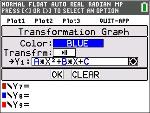 Sugerencia: Si introduce una función mediante el teclado, solo se permitirá A-D en las ecuaciones de transformación Y1 y/o Y2. Ambas letras se encuentran mediante la tecla ƒ. Por ejemplo, para introducir el coeficiente A, pulse ƒ [A] (encima de la tecla »).