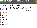 | • | A função por ramos utiliza um nível MathPrint™ de um máximo de quatro. Pode ver o cursor de seleção ( ) quando introduz uma função num modelo, mas essa função é permitida se tiver sido introduzida fora de um modelo por ramos. Para manter o número máximo de níveis MathPrint™ desejados, introduza a função noutra YVar, como Y3, e a seguir utilize Y3 no modelo por ramos. |