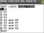 Note que se for selecionado um formulário de intervalos a partir do menu CONDITIONS (CONDIÇÕES), o formulário de intervalos será colado no formato lógico correto para um intervalo como, por exemplo, -2 + X e X + 5. Este é o formato correto para todas as funcionalidades na calculadora para dar o resultado de teste lógico esperado Verdadeiro(1)/Falso(0) e irá dar também o intervalo X correto em representação gráfica por ramos.