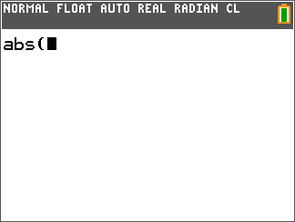 | • | När din TI-84 Plus CE-T är i MathPrint™-läge klistrar många funktioner in MathPrint™-mallen på Start-skärmen. Till exempel klistrar abs( in mallen för absolutbelopp på Start-skärmen i stället för abs(. |
