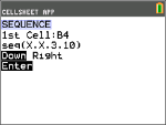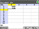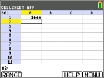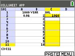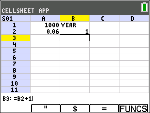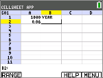 Bläddra till cell B1 och skriv “ÅR (med ƒ-tangenten eller Alpha-låset y7,vid behov). OBS: Du måste lägga till ett citationstecken (”) före ordet ÅR. Citationstecknet talar om för CellSheet att behandla detta som text istället för en variabel. |