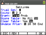 Avsluta appen med OK, <ESC, JA, AVSL., JA. Se till att spara dina data i listor (enligt beskrivningen ovan) så att simuleringen blir kvar i minnet när du stänger av grafräknaren. |