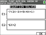 | 1. | Mata in en ekvation som uttryck 1=uttryck 2 (E1=E2). |