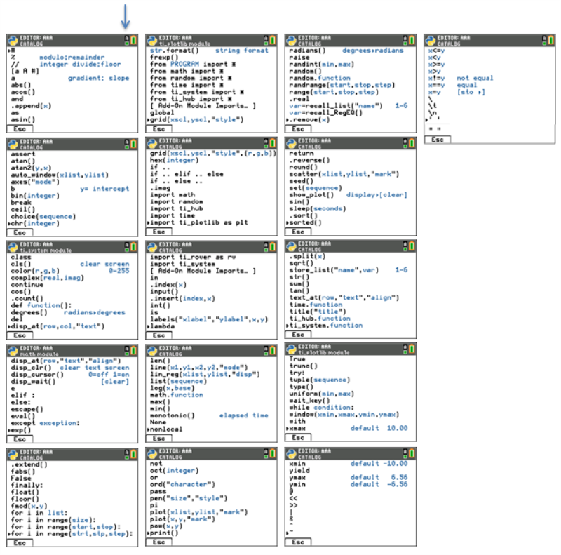 y N är endast tillgängligt i Editor och Shell-gränssnittet. För en mer detaljerad beskrivning av varje katalogobjekt, se Referensguiden. Från högst upp i menyn Catalog, tryck på } för en cirkulär navigering av katalogen.